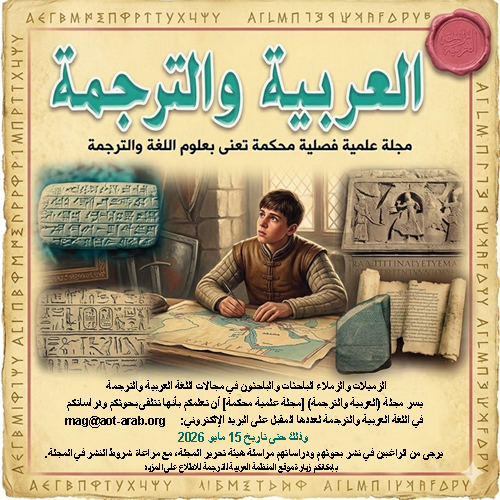 يسر مجلة (العربية والترجمة) [مجلة علمية محكمة] أن تعلمكم بأنها تتلقى بحوثكم ودراساتكم في اللغة العربية والترجمة لعددها المقبل