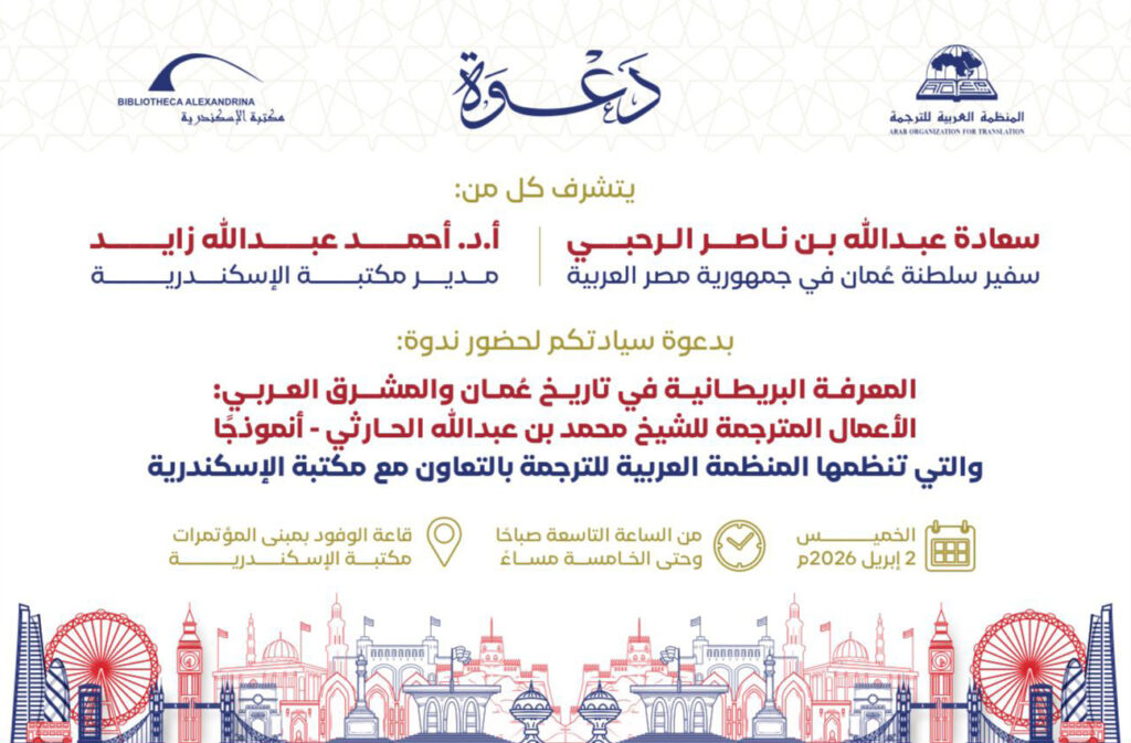 ندعوكم للانضمام إلينا في رحلة عبر التاريخ العماني والمشرق العربي، من خلال ندوة “المعرفة البريطانية في تاريخ عُمان والمشرق العربي” التي تستعرض إرث الأعمال المترجمة للشيخ محمد بن عبدالله الحارثي.