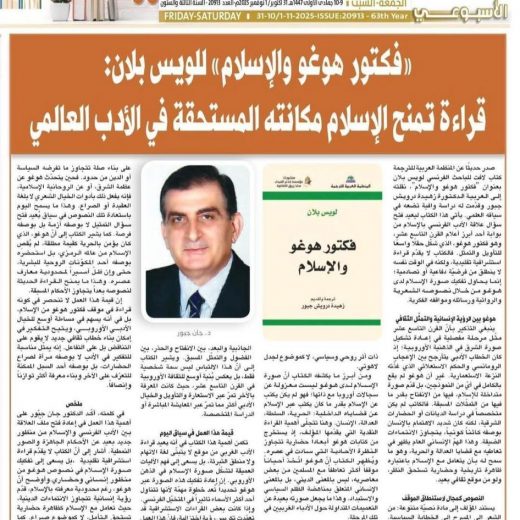 صدر حديثًا عن المنظمة العربية للترجمة كتاب لافت للباحث الفرنسي لويس بلان بعنوان “فكتور هوغو والإسلام”، نقلته إلى العربية الدكتورة زهيدة درويش جبور وقدّمت له دراسة وافية تضعه في سياقه العلمي. يأتي هذا الكتاب ليعيد فتح سؤال علاقة الأدب الفرنسي بالإسلام من بوابة أحد أبرز أعلام القرن التاسع عشر، وهو فكتور هوغو، الذي شكّل حقلًا […]